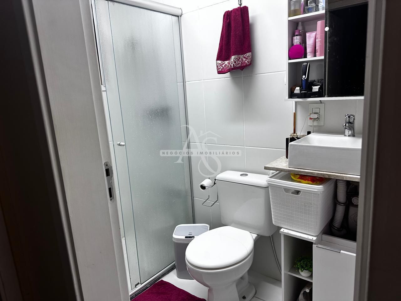 - banheiro socia com gabinete e box de vidro;