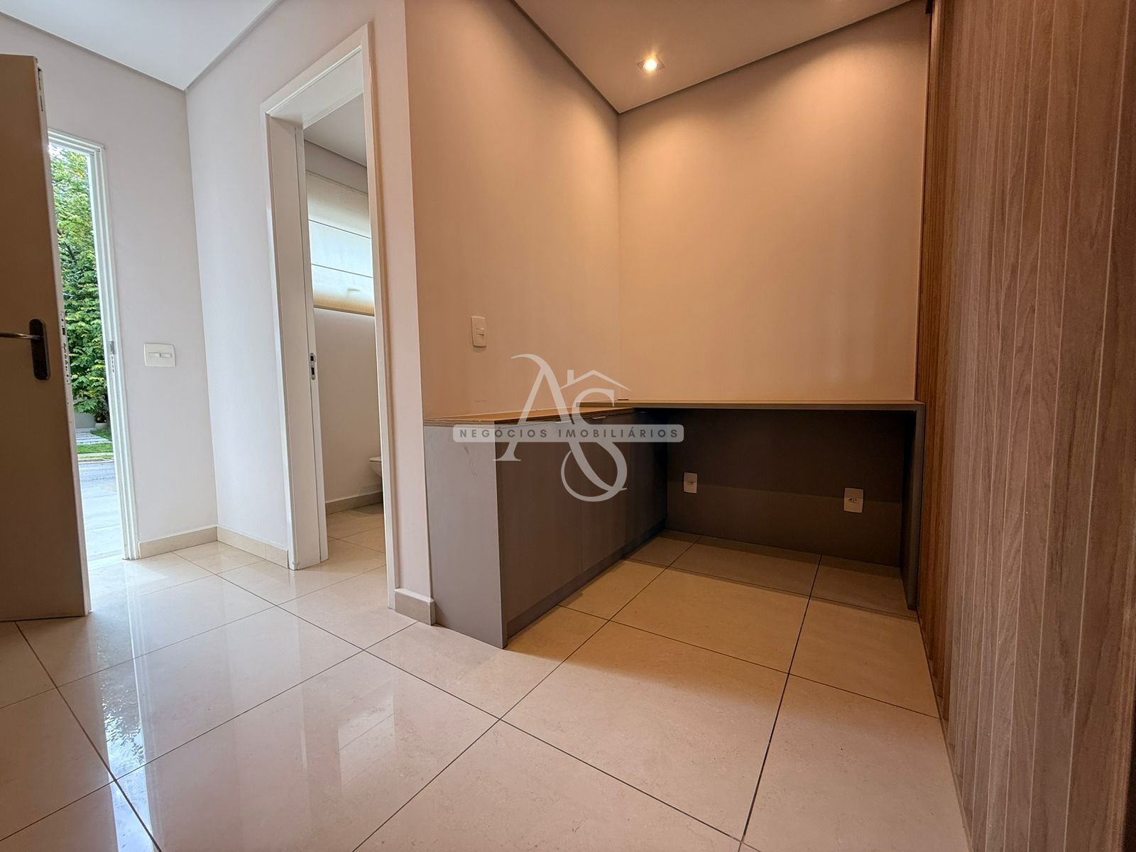 Sala com 2 ambientes, escritório, lavabo, cozinha planejada com armários, forno, fogão e coifa. Lavanderia com entrada de serviço.